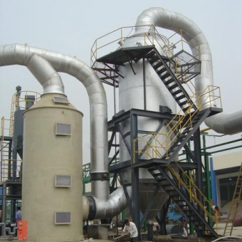 玻璃鋼脫硫設備工流程:首先,熱煙氣進入預洗滌塔,與飽和硫酸銨溶液接觸,煙氣在此過程中被冷卻,同時,由于飽和硫酸銨溶液中水的蒸發而析出硫酸銨晶體。已被冷卻的煙氣通過除霧器進入SO2吸收塔。在吸收塔中,氨與水混合成氨液。煙氣中的SO2在此被吸收,與氨反應生成硫酸銨。最后,脫硫后煙氣經120米高的煙囪排入大氣。硫酸銨溶液被送入預洗滌塔循環利用。預洗滌塔中的硫酸銨料漿進入脫水系統。先經水利旋流器脫水,然后經離心機得到硫酸銨濾餅。從旋流器和離心機回收的清液返回預洗滌器,循環利用。硫酸銨濾餅被送至造粒系統,得到高利用價值的顆粒硫酸銨肥料,在被火車或者卡車運走前,存放在能容納50,000噸硫酸銨的圓頂儲倉內。